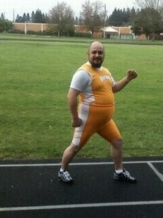 Next stop, Greg's up at the hamster wheel for the keg walk. See dad keg walk.