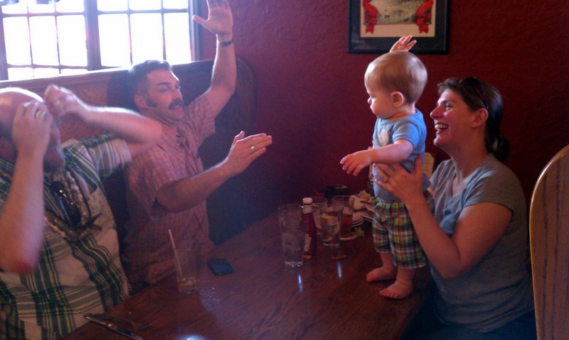 Porter took multiple steps (2) on his own for the first time tonight. His name, coupled with the fact that we were in a bar and he did it on top of a table can't be a good sign...